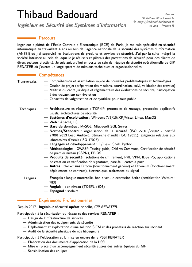 ParcoursIngénieur diplômé de l’ECE, je me suis spécialisé en sécurité informatique en travaillant 4 ans au sein de l’ANSSI puis dans un cabinet de conseil en sécurité informatique (Intrinsec). Je suis aujourd’hui RSSI adjoint du GIP RENATER où je suis notamment responsable du SOC interne.Curriculum Vitae![]() Cliquez sur l'image pour télécharger le CV. ArticlesLes articles suivants ont été initialiement publiés sur le site Uppercult.fr (site fermé en 2016) :![]() Dans son livre sorti en avril 2011 « La vie privée en péril – Des citoyens sous contrôle »[1], Alex Türk, universitaire en droit public, sénateur du Nord (UMP) et vice-président puis président de la commission nationale de l’informatique et des libertés (CNIL) entre 2002 et 2011, revient sur l’intrusivité croissante des nouvelles technologies et l’atteinte qu’elles peuvent porter à notre intimité. Un an plus tôt, Jean-Marc Manach, journaliste spécialiste des questions liées à l’impact des TIC sur la société, étudiait, dans « La vie privée, un problème de vieux cons ? »[2] les mêmes problématiques mais n’en tirait pas exactement les mêmes conclusions. Je vous livre ici les points clés abordés dans ces deux ouvrages. Les technologies intrusives se répandent à une vitesse impressionnante : sous l’effort des industriels français particulièrement reconnus dans le domaine, les technologies biométriques sont utilisées dans des secteurs de plus en plus communs. La géolocalisation des individus a changé de forme et n’est plus seulement une fin mais un effet secondaire d’un nombre croissant de produits : si le but d’un GPS ou d’un bracelet électronique est de pouvoir géolocaliser le porteur celui d’un téléphone est d’établir une communication, et pourtant ce dernier géolocalise également. Enfin, sur la voie publique, les caméras de vidéosurveillance (ou « vidéoprotection » pour certains), dont les premières ont tout juste 20 ans, devraient passer le cap des 60 000 dans les prochains mois. Si l’on ajoute à cela l’interconnexion des système et leur miniaturisation progressive qui les rendent transparents aux yeux du citoyen, le danger potentiel que tout cela représente pour nos libertés est